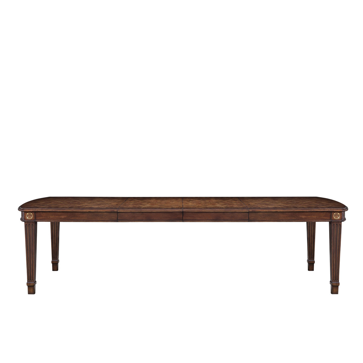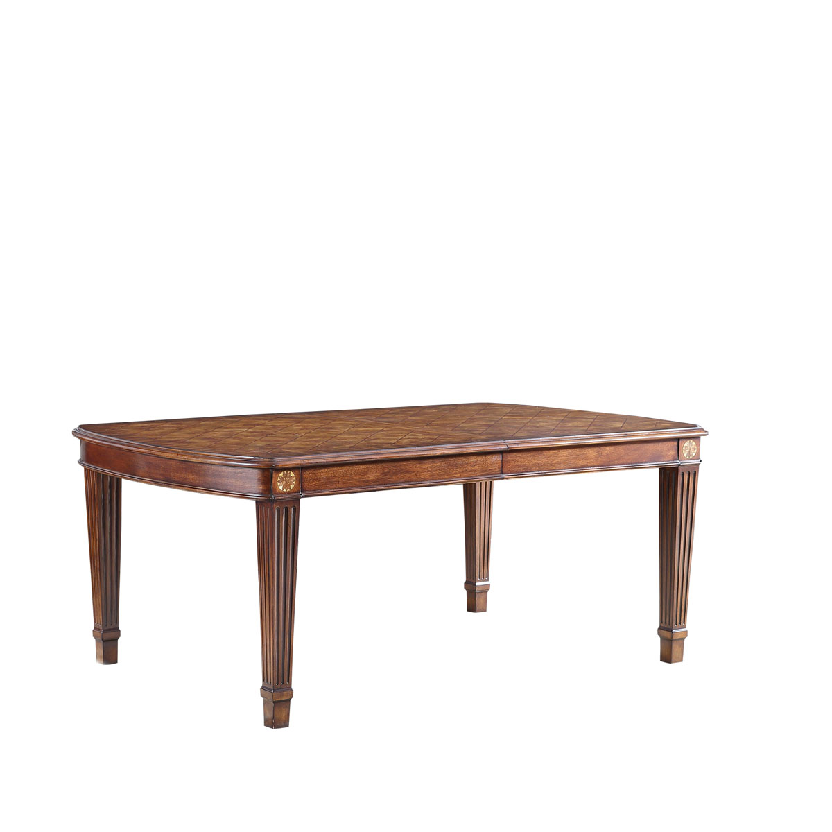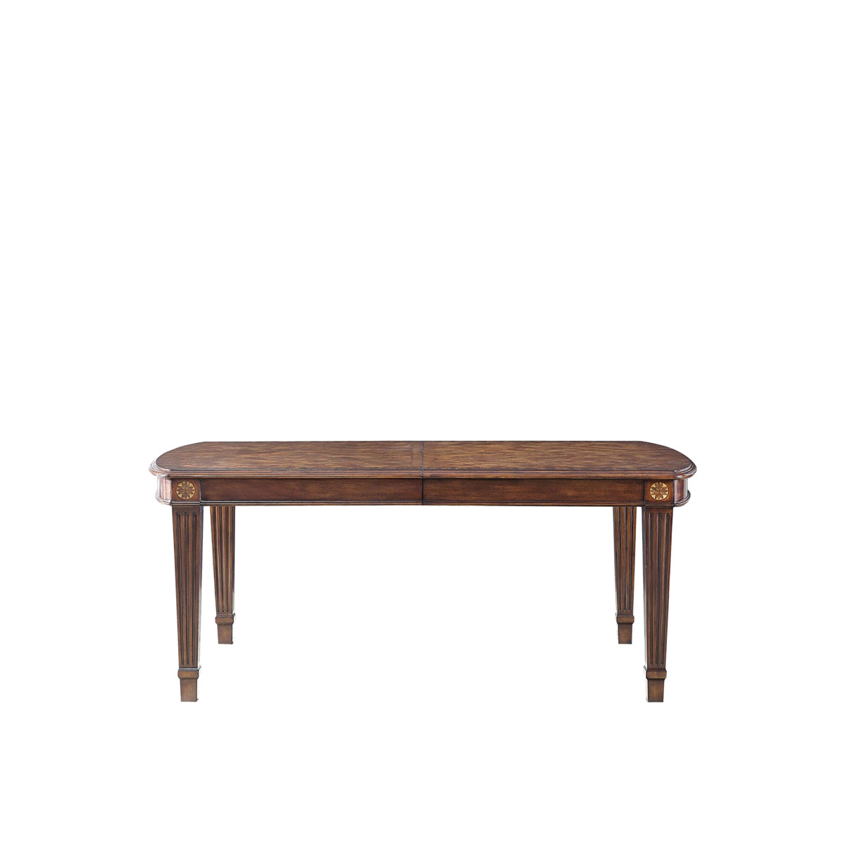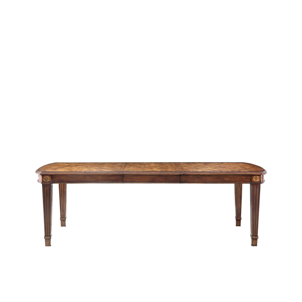 * 采用了喬治王朝后期流行的上粗下細帶槽紋方形腿,結合略帶弧度的線條與雅致的木皮貼面,將英式家具在新古典時期的芳容身姿展露無遺。