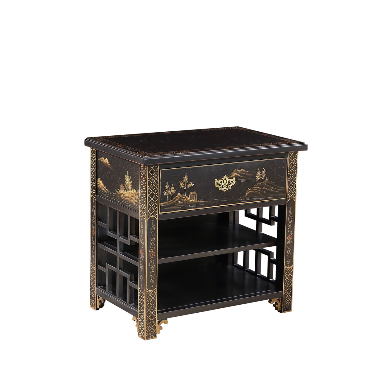 * 花紋圖案都是經(jīng)過(guò)專業(yè)工藝師精心繪制而成, 所以每件產(chǎn)品都是獨(dú)一無(wú)二的; * 一個(gè)儲(chǔ)物抽斗,而在其底部采用經(jīng)典硬木實(shí)木滑軌設(shè)計(jì); * 下部為開(kāi)空設(shè)計(jì),方便取用物品;