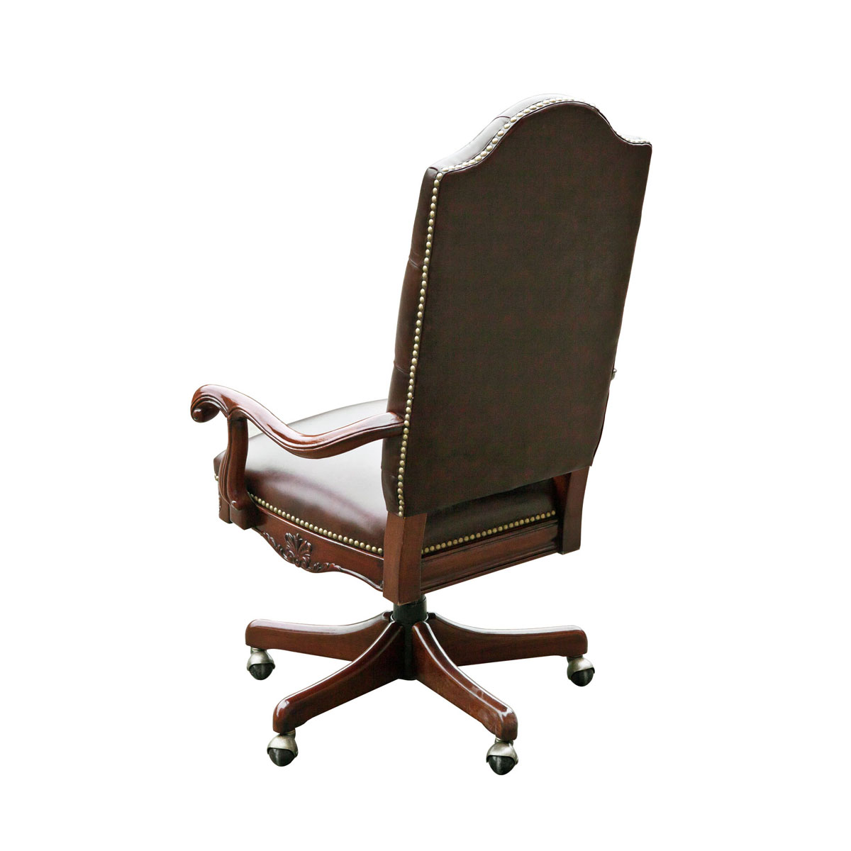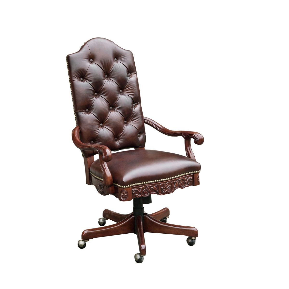 * 作為一個移民國家,各種文明在美國這片神奇的土地上兼容并蓄,在家具上亦如是;這款美式辦公椅用細膩的牛牛皮包裹著Camelbac Silhouette(駝峰輪廓)椅背,配上歐式家具的經典表現形式——拉扣設計,不僅造型美觀而且舒適實用;再點綴一些精致的花朵雕刻,辦公空間也變得如此生意盎然;