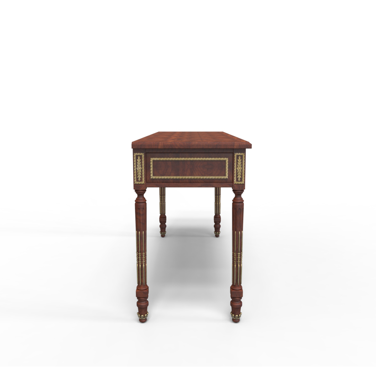 * 為表現法國路易時期的莊嚴和浪漫,以法國凡爾賽宮為設計元素。使用歌頌路易十四時期的太陽花雕刻;路易十六時期的建筑柱雕刻;顯示其王權穩固地位的錐形腿腳設計、古銅色的球形把手和貼金工藝,完美演繹了法式宮廷家具的奢華尊貴。