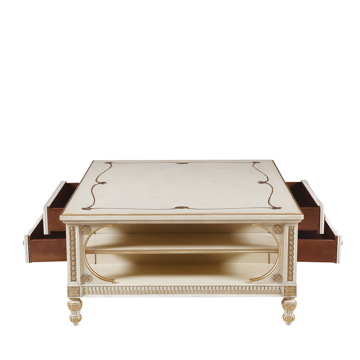 * 兩個儲物抽斗,其底部采用經典的硬木實木滑軌; * 左右兩邊為開放式設計,內部各有一塊層板; * 腳底部裝有可調腳釘;