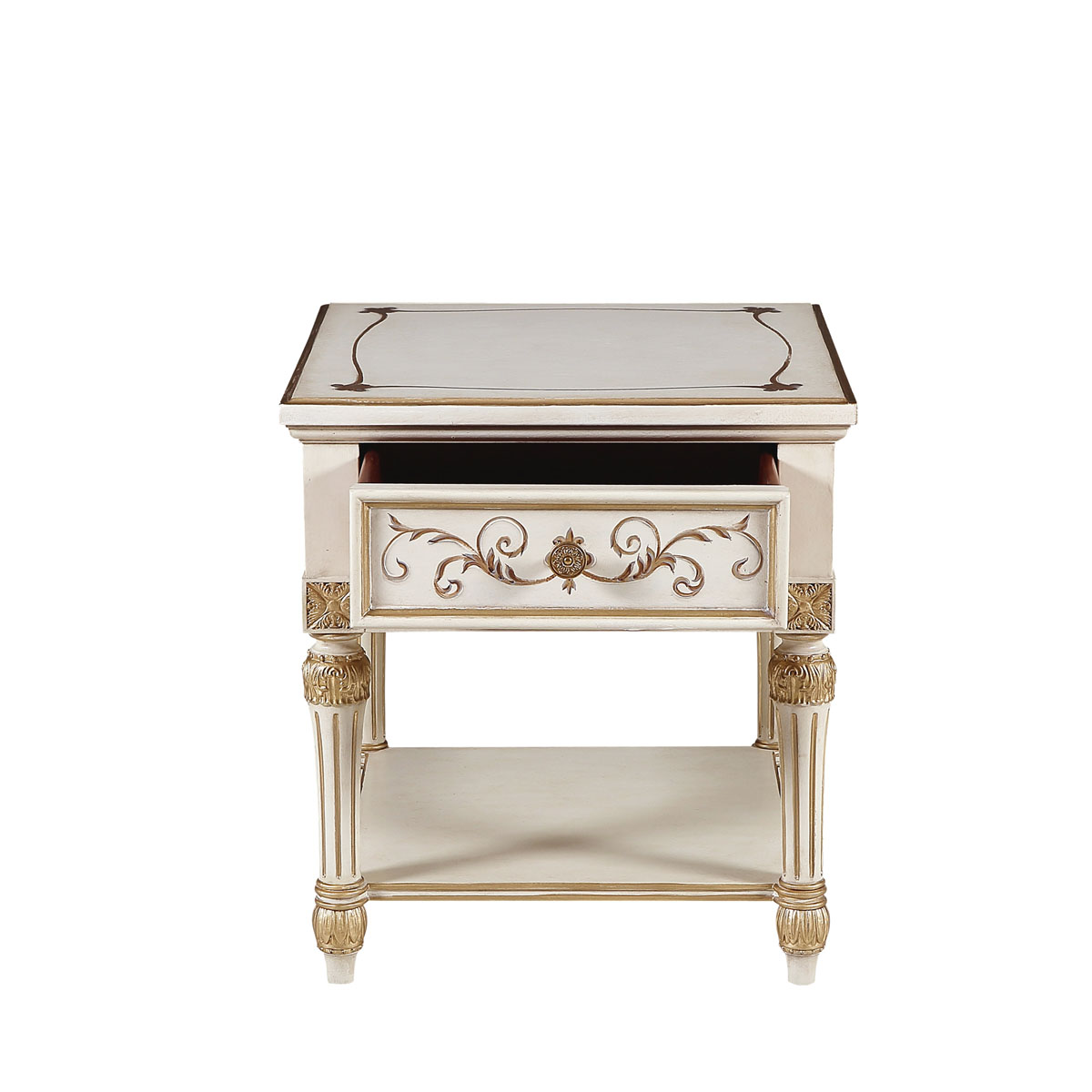 * 手工雕刻的工藝細節結實的連接技術18道以上的多步驟油漆工藝; * 一個儲物抽斗,其底部采用經典的硬木實木滑軌 * 底部的層板可放置家庭裝飾品; * 腳可拆裝 * 底部裝有四個調整腳釘;
