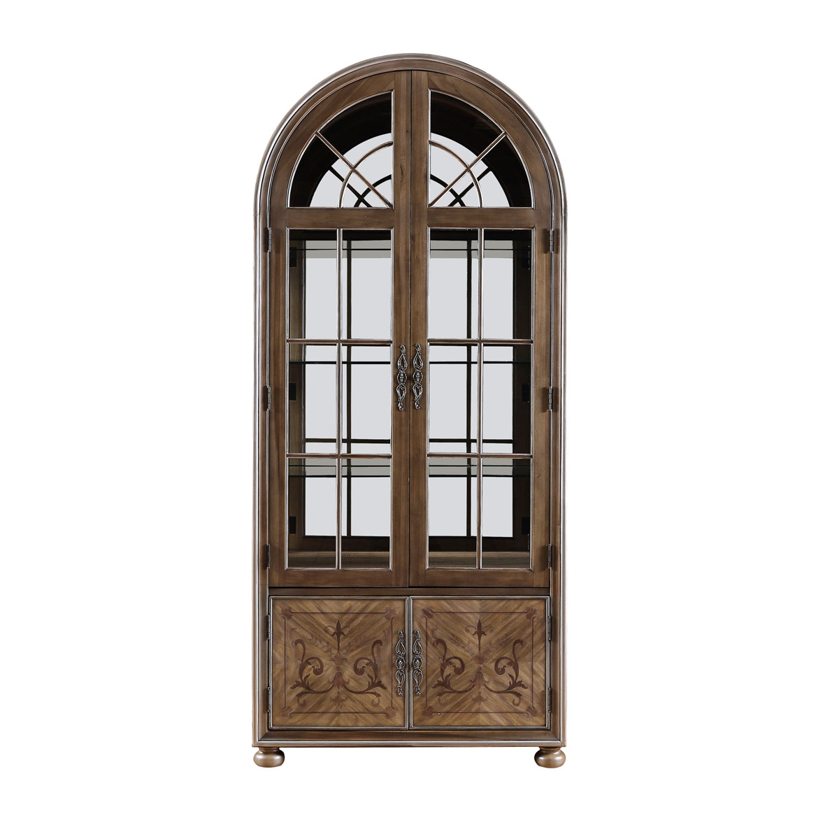 * 門內有三塊玻璃層板,背板處裝有背鏡,使柜身內部的光線更通亮; * 下門內有一塊可調木制層板;