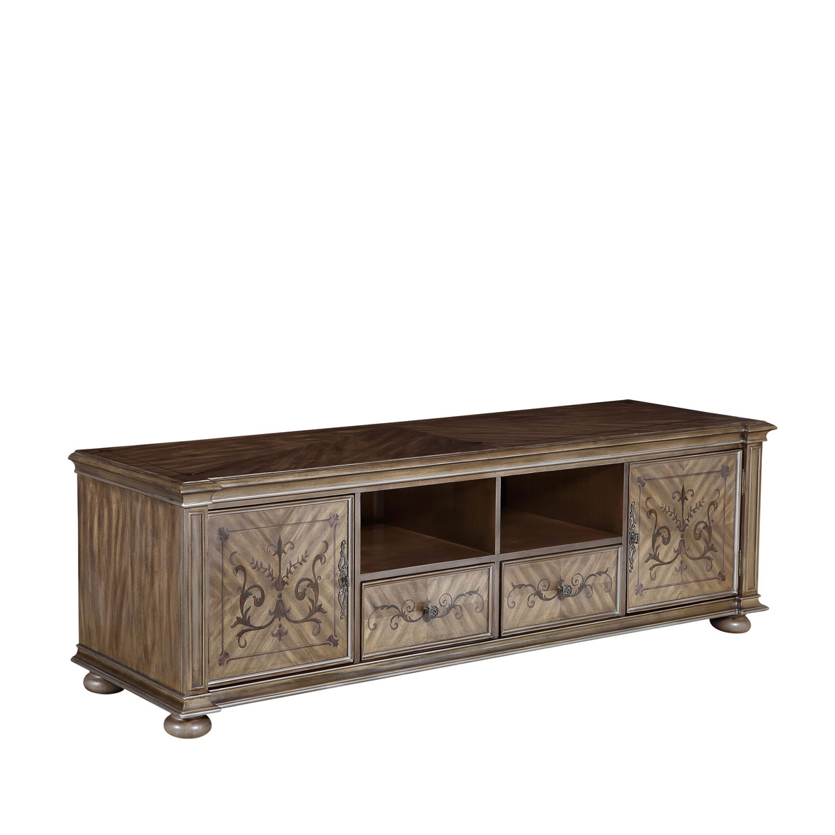 * 中間兩個儲物抽斗配有CD/DVD隔板,可CD/DVD更好的存放,其底部采用經典硬木實木滑軌設計; * 兩扇門內各有一塊可調層板;上部為開空設計,可在內放播放器等電子器材; * 腳底部裝有可調腳釘;