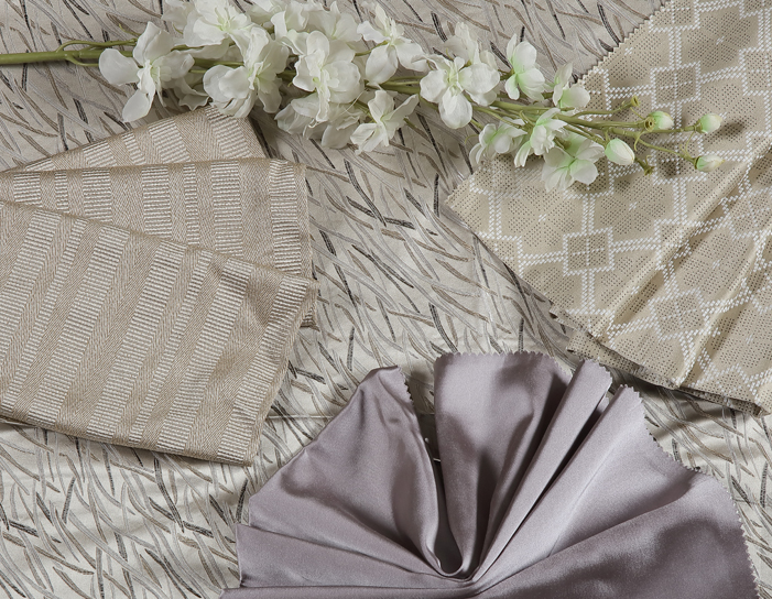 幾筆簡單線條勾勒出銀灰軌跡,冷靜干練;密集分布的提花面料,手感柔軟舒適,整體軟裝簡潔優雅,體現了對簡單寧靜生活的向往和追求。
