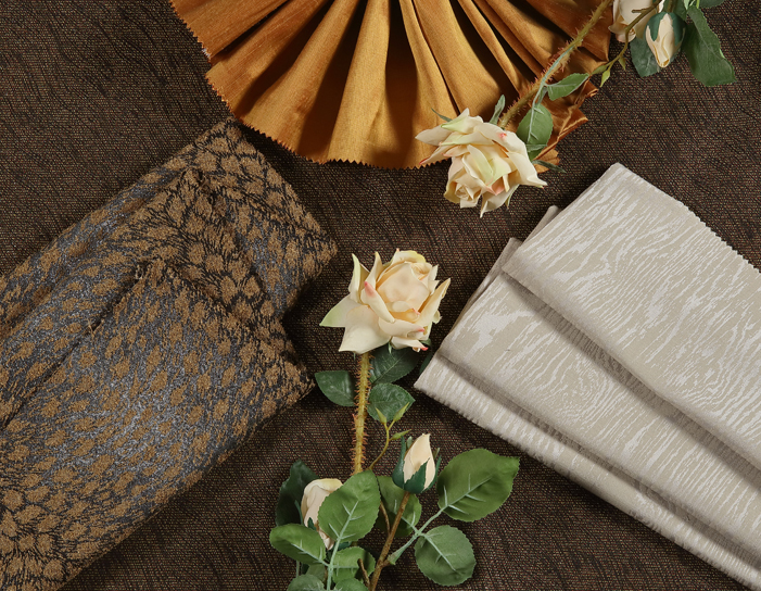 以威士忌復雜而穩重的口感為設計靈感,使用成熟的棕色為主調,配以絢麗的米色花紋及輝煌的金色絲質面料。暖色系的配搭,令宮廷風的皇家威士忌系列營造出既溫馨又成熟的居家感覺