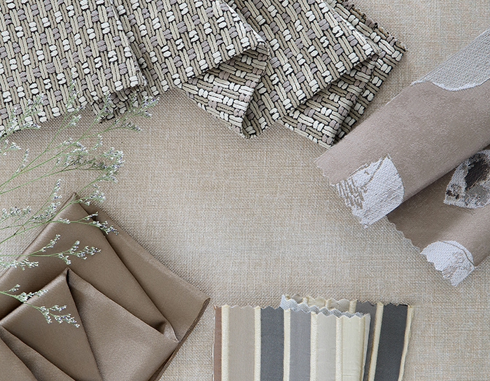 淡黃淺灰為底,樟棕枝葉和香薰色枝藤,以及香檳紫三者構成極為豐富飽滿的意境圖案,既表現春意纏綿的清新浪漫,也呈現出一種繽紛、張力十足的視覺感官。在空間整體造型上,不僅達成一致性,色調之間也容易形成均衡的美感。