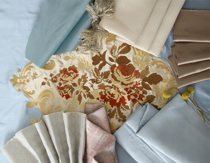 米白色調中加入適當比例的棕色,以天然的古樸抵抗歲月的痕跡;藍色刺繡提花栩栩如生,精致細膩中糅著典雅的矜持,承襲著悠久的傳統工藝,繡制華美藝術。